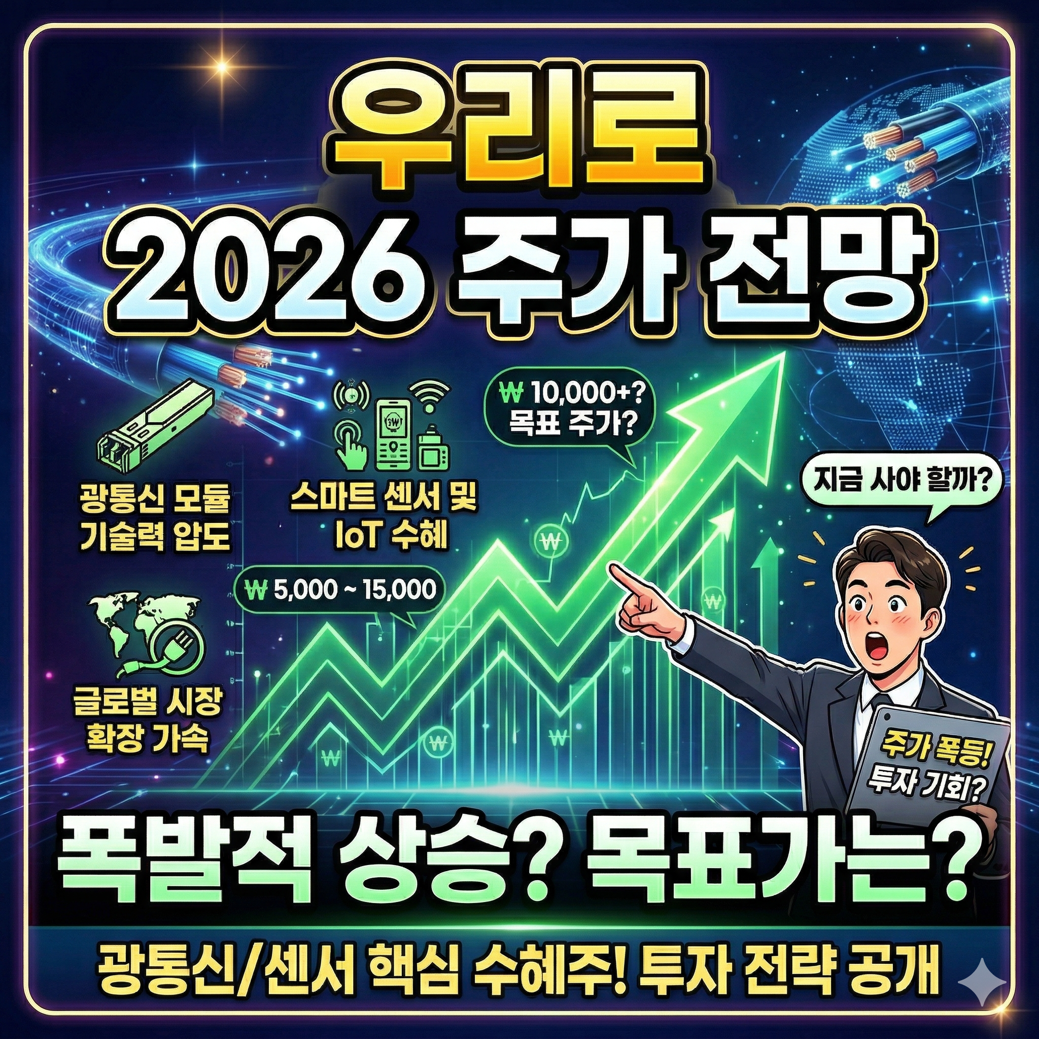 결론적으로 우리로 주가 전망은 '성장성'과 '실적'이라는 두 마리 토끼를 모두 잡을 수 있는 구간에 진입했습니다. 변동성에 대비한 분할 매수 전략으로 접근한다면, 2026년 최고의 수익률을 안겨줄 종목이 될 것입니다.
